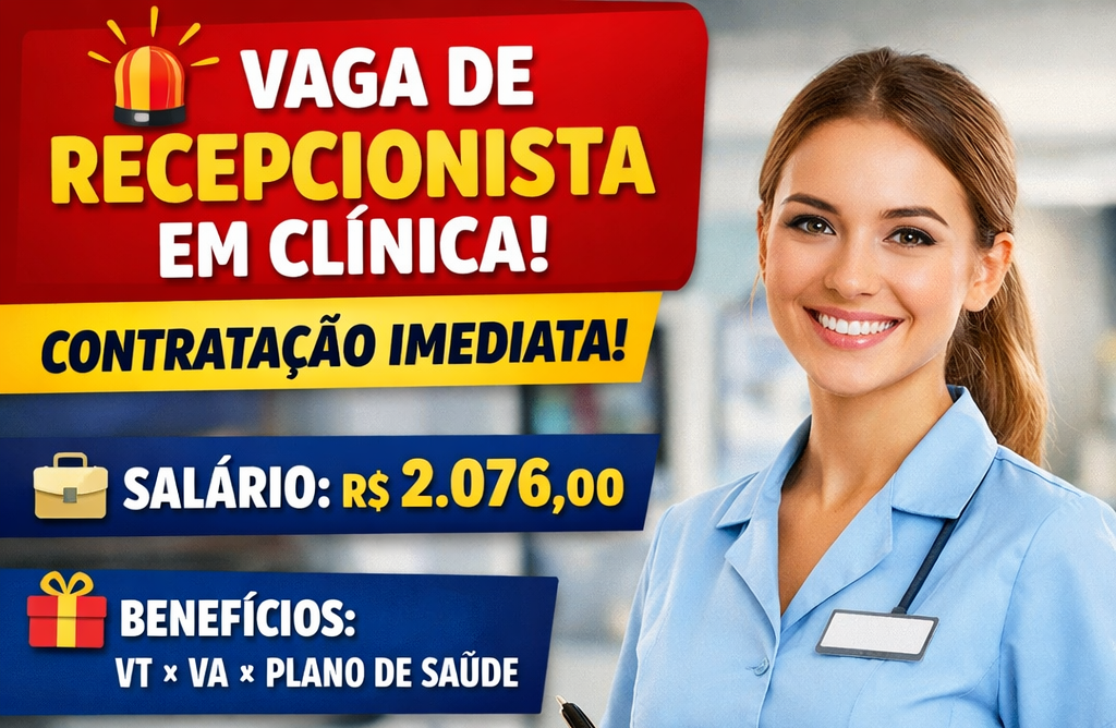 Vaga de Recepcionista em Clínica: Salário de R$ 2.076 + Benefícios